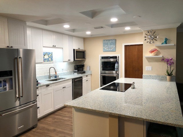 With a carefully chosen terrazzo-style mix of pre- and post-consumer recycled glass, GEOS is a unique surface of superior strength and remarkable beauty. GEOS is a non-porous, durable recycled glass surface that performs, fabricates, and installs like engineered stone or terrazzo. Combined with proprietary resin binders, GEOS Recycled Glass Surfaces do not require sealing. GEOS Surfaces are available in several unique color combinations and GEOS are suitable for both commercial and residential applications looking for a terrazzo countertop look and a sustainable story.
